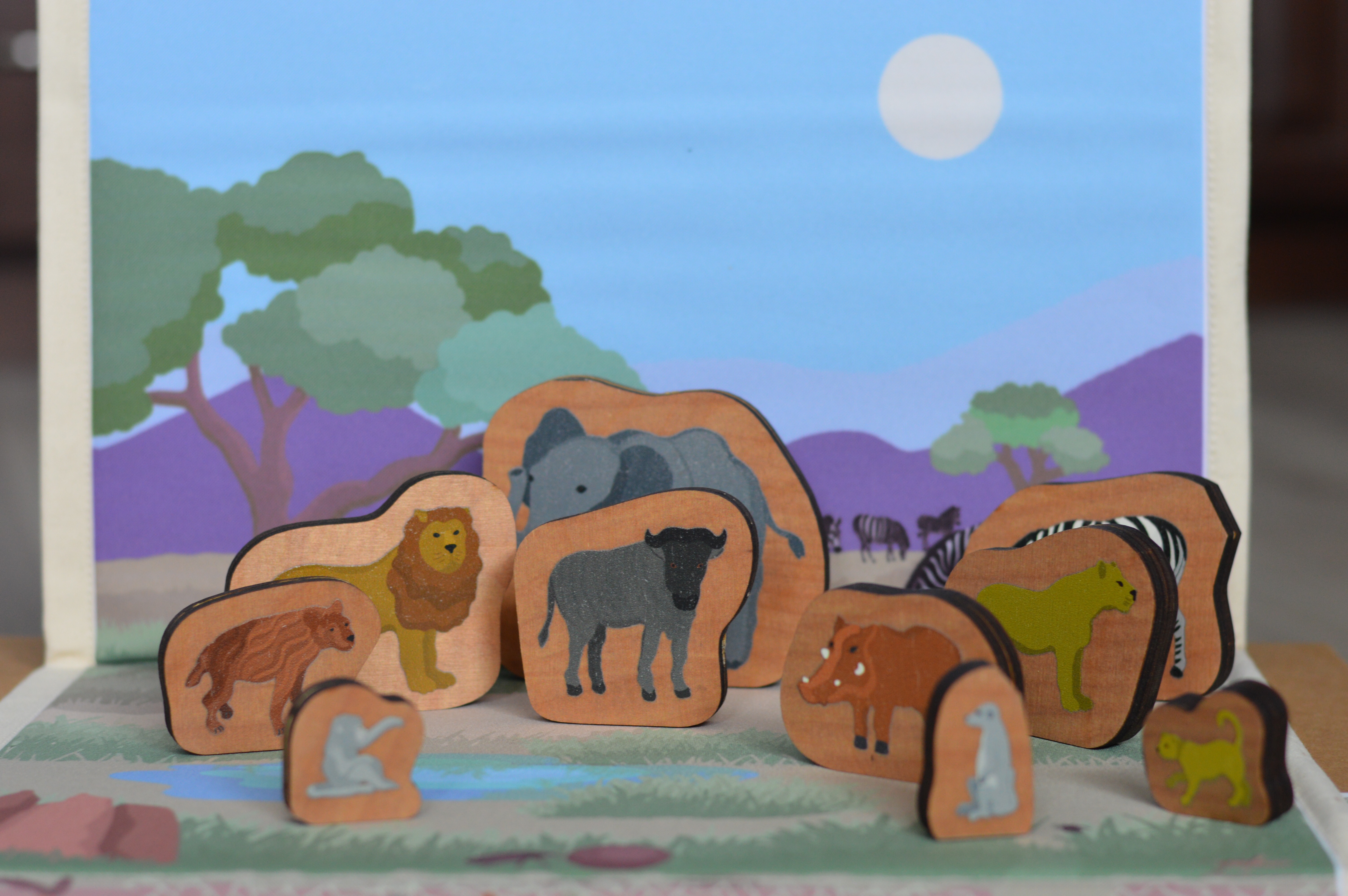 We are giving away this full set of the Africa Savannah Theatre Mat. It includes the theatre, grammar card set, animal tracks rubber stamps and sequence cards.