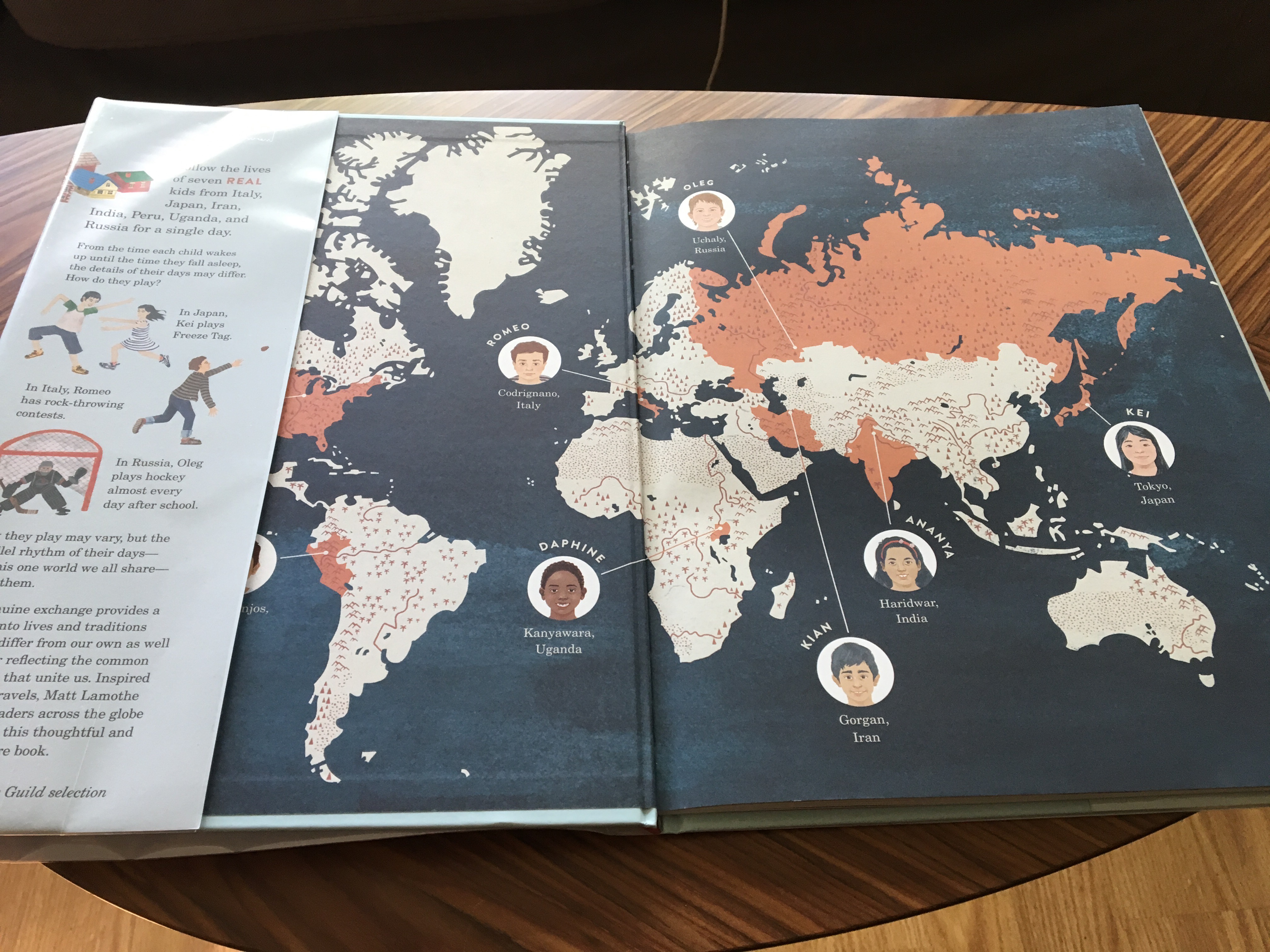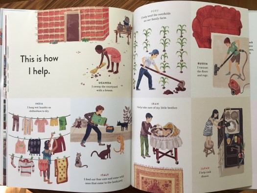 This book is excellent because it has what I struggle to find: realistic illustrations of children all over the world without the stereotypes of dress or religion found in other books. It also doesn’t contain children from North America which so many books focus on.
