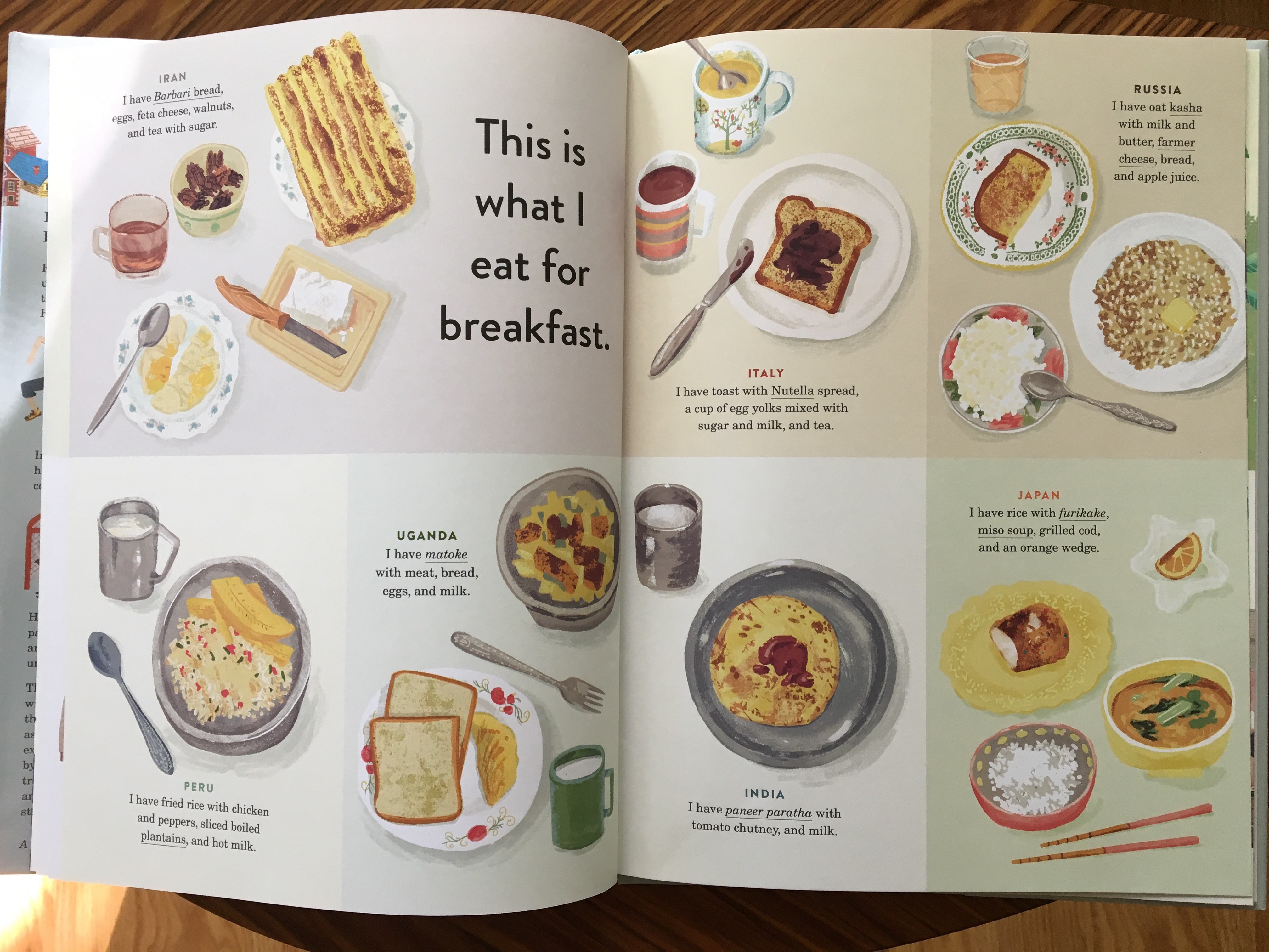 The pages are beautiful, interesting and best of all, offer opportunities for vocabulary building and further discussion. The story follows each child from breakfast, through the day and the reader and child can easily make connections between what the person in the book is doing with what they do each day.