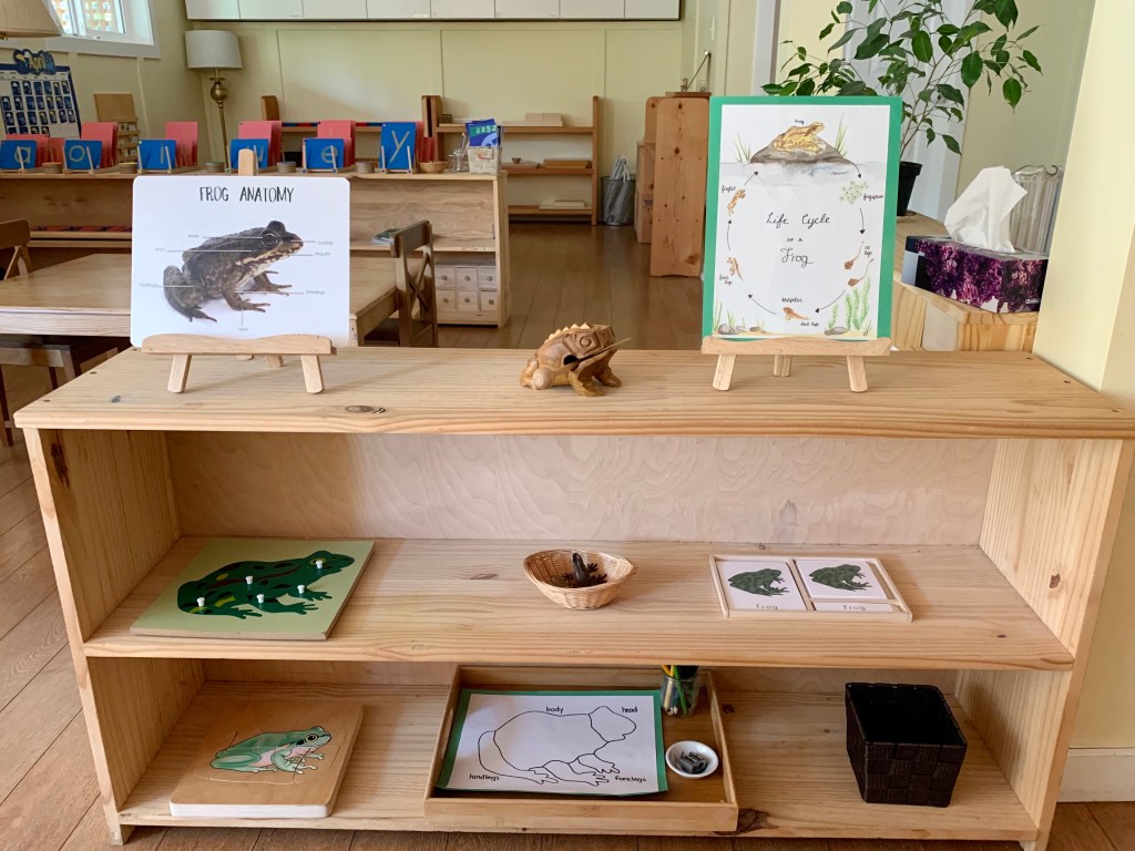 It’s a great addition to our 3-6 zoology shelves and we are lucky enough to be able to go out and see this life cycle happening right in our own community! So many of the local wet areas have tadpoles right now.