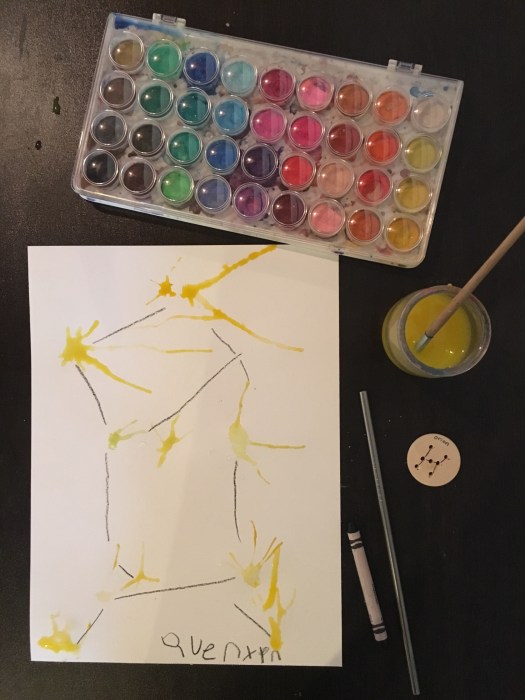 Straw painting is so easily accessible to children beginning around two years old. It requires nothing more than a straw and some coloured water. We have loved making constellations over the years.