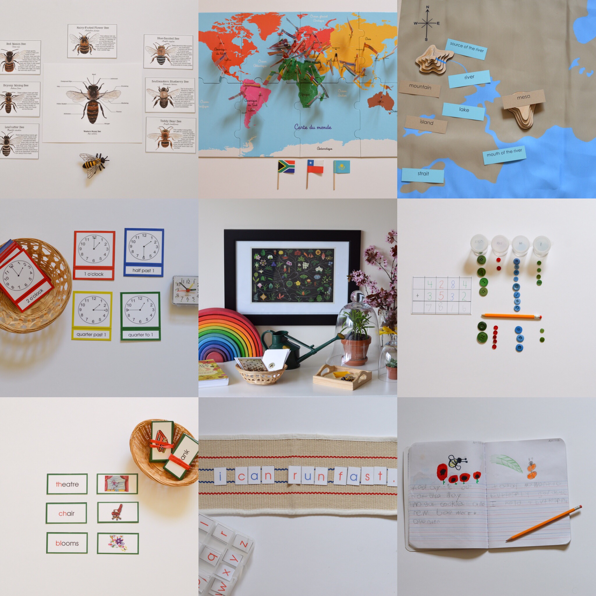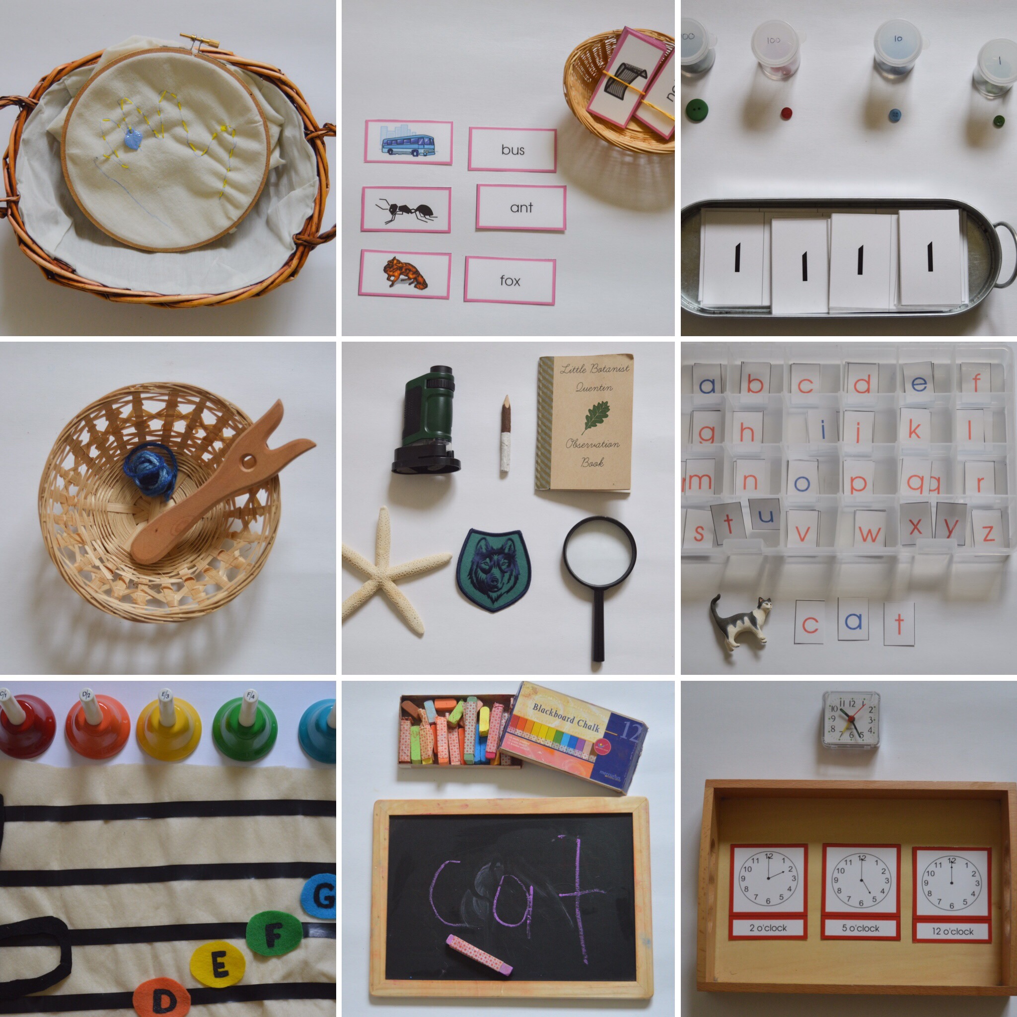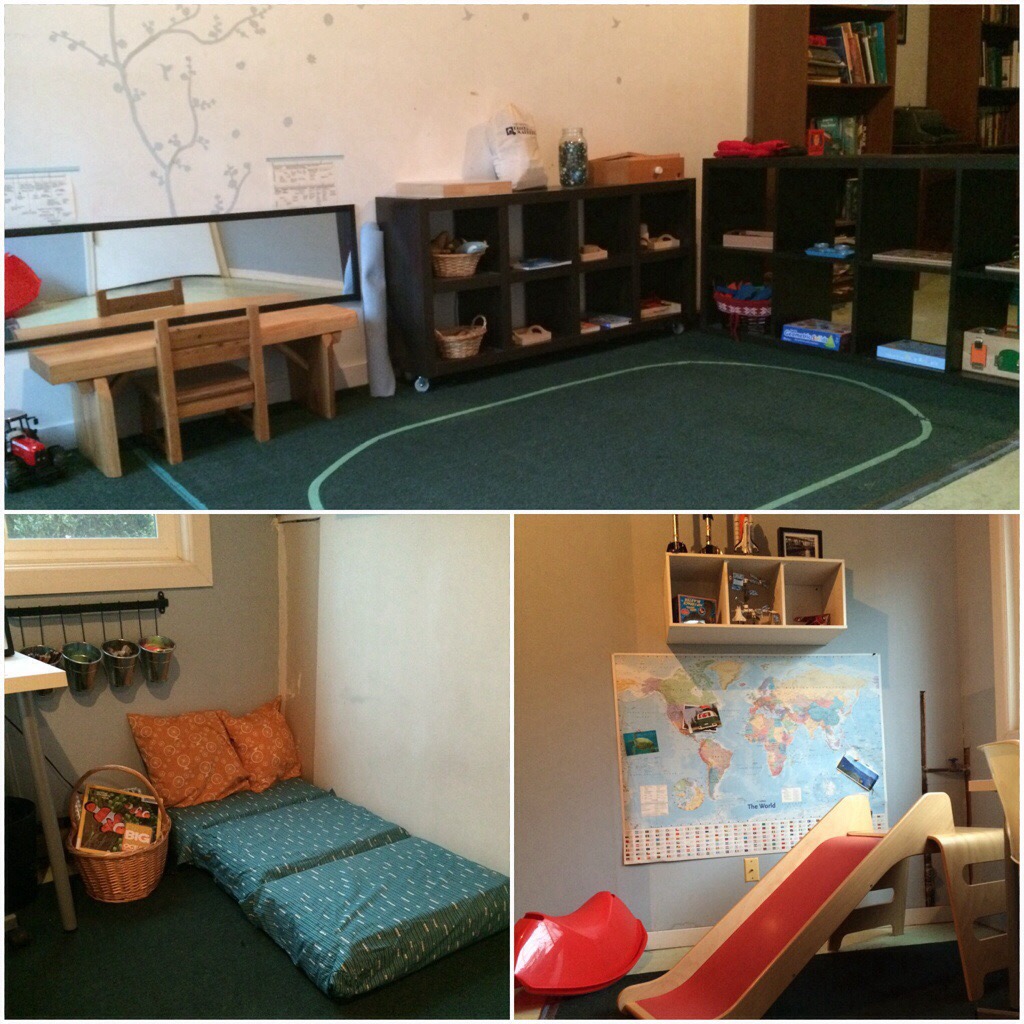 Quentin attends a beautiful, peaceful 3-6 class in a traditional Montessori school Mon-Fri. There is no need for us to have traditional Montessori classroom materials in the home. Instead the materials here are similar to and compliment his school experience.