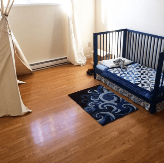 The only thing we will change for him in his room is a new bed. It’s time for a twin size bed even though he has lots of space left in his cot. A “Big Boy Bed” at his own request. Above all his room will remain peaceful, uncluttered and made for resting. The only toy he keeps in here is his farm my Father made for him. The reading corner teepee I made him still houses a cosy sheepskin and custom pillow. In the morning the sun fills it’s white canvas with soft light, and it’s the perfect spot to curl up with a book.