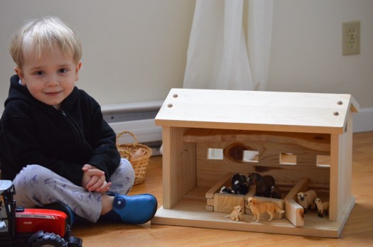 Quentin also has “open-ended” things such as his garden and his barn, both made by my parents.
