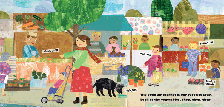 Sounds Around Town was one of Quentin’s very first books. It is full of such rich language, a multicultural setting without specifically touching on it and interesting artwork.